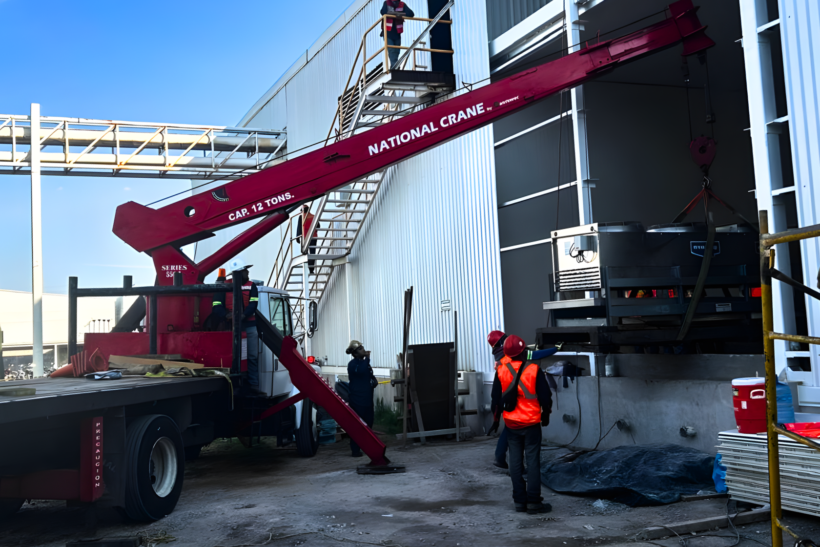 Ejecución de maniobras especializadas con grúas para el movimiento, carga y colocación de equipos y estructuras industriales.