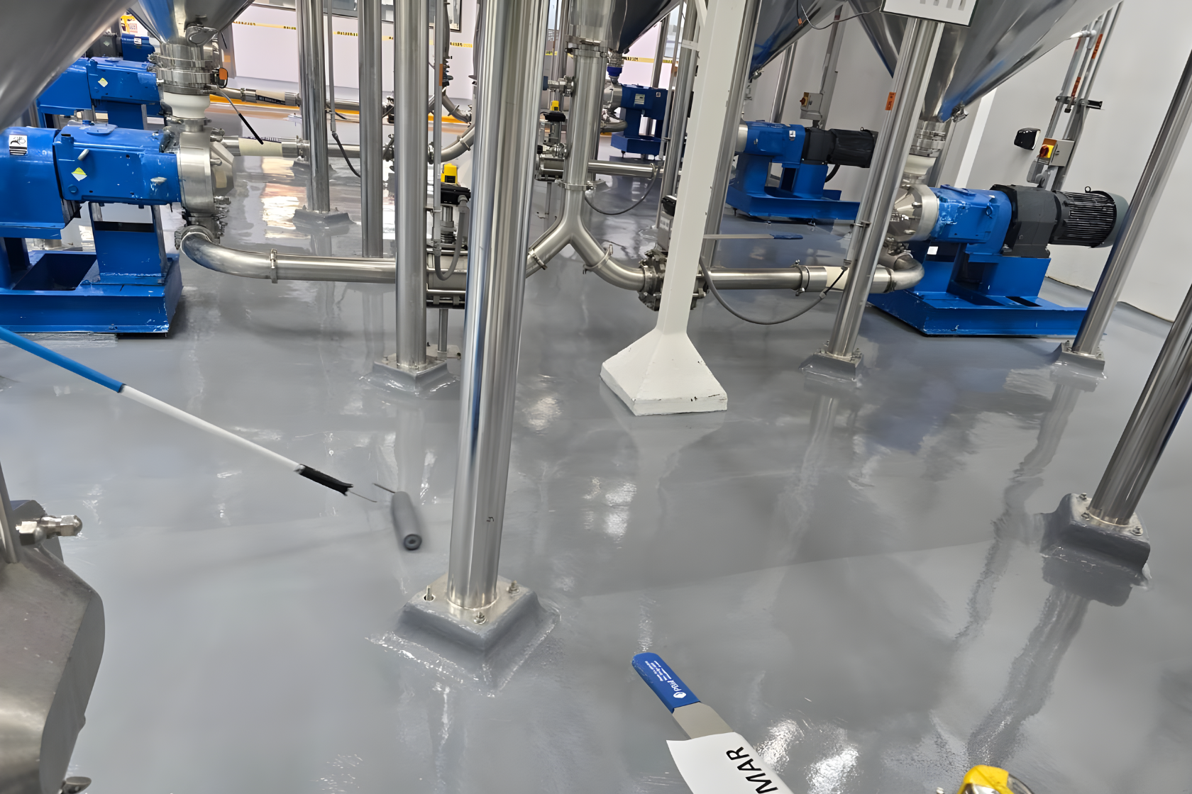 Aplicación de recubrimientos especializados para proteger pisos e infraestructura contra abrasión, químicos y humedad.
